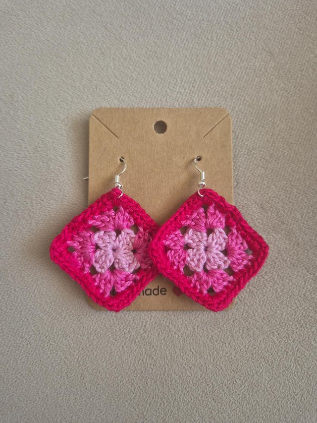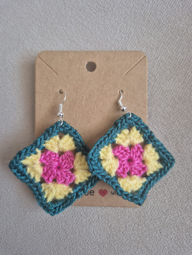 Des boucles d'oreilles au crochet alliant la mode et le savoir-faire du fait main. Cette paire a été confectionnée avec soin et minutie, mais surtout avec amour.