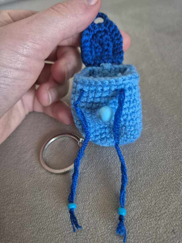 Mini-sac porte-clés crocheté à la main, conçu pour ranger jetons et petite monnaie en toute simplicité. Grâce à son anneau porte-clés, il s’attache facilement aux clés pour un accès rapide et sécurisé. Pratique et compact, il permet de garder l’essentiel à portée de main tout en évitant les pertes. Un accessoire fonctionnel, idéal pour un usage quotidien.