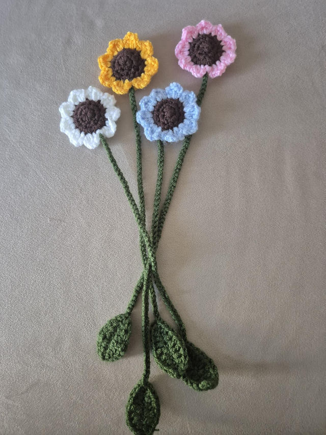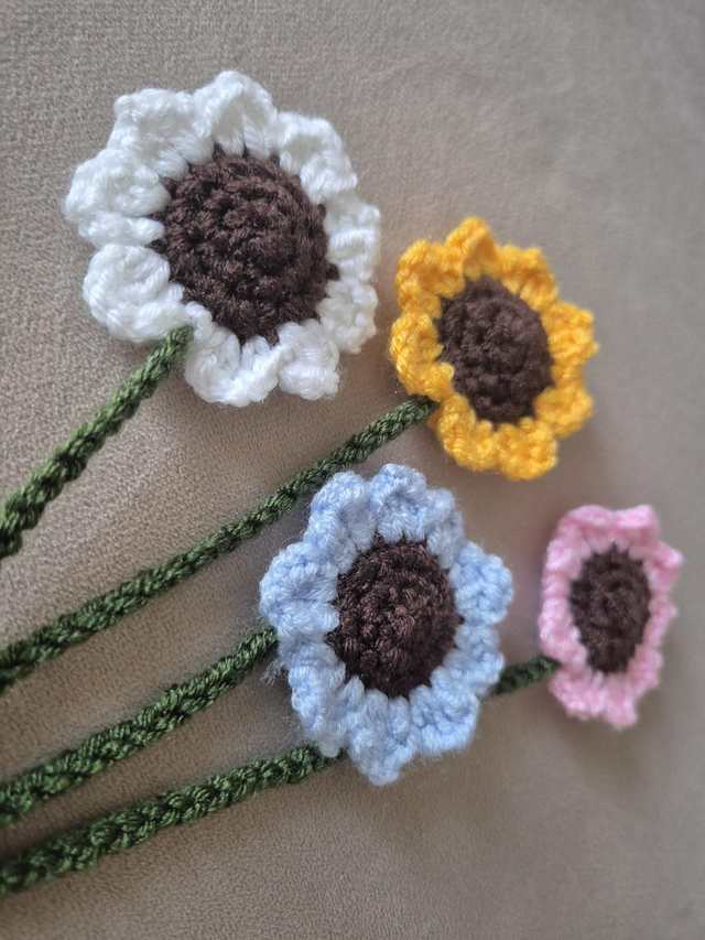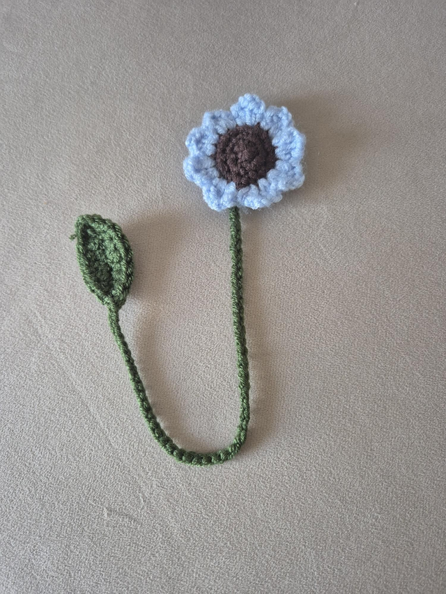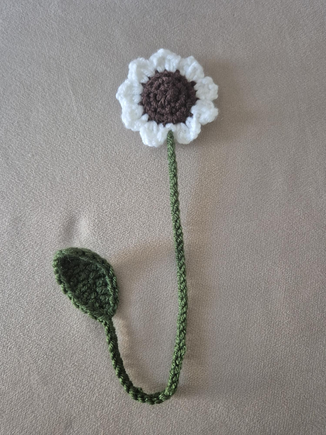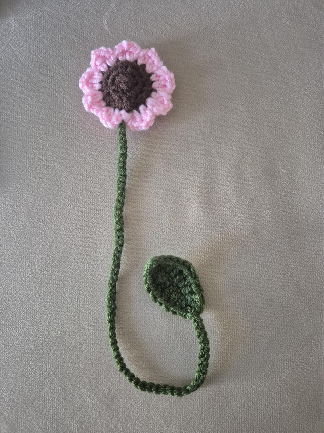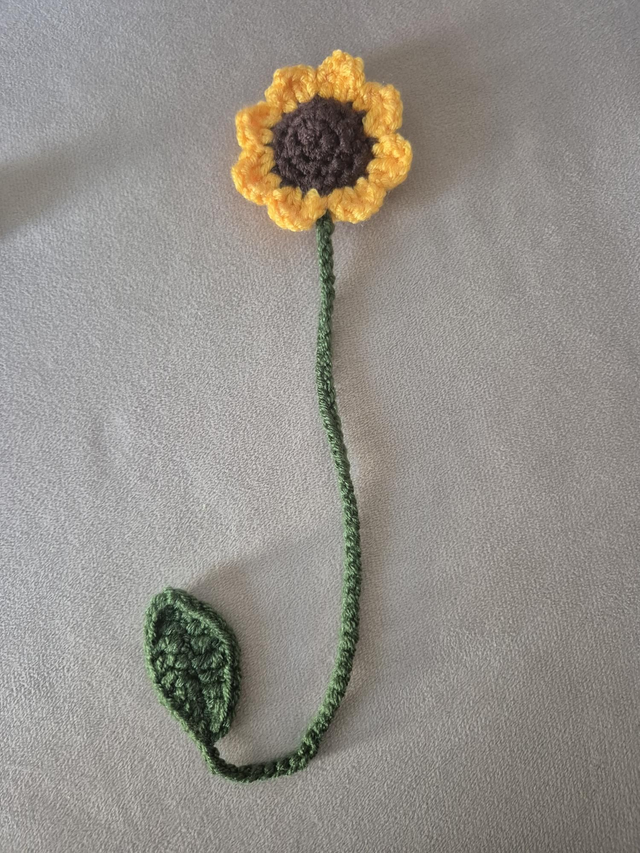 Ce délicat tournesol au crochet apporte une touche de lumière et de nature à vos livres.
